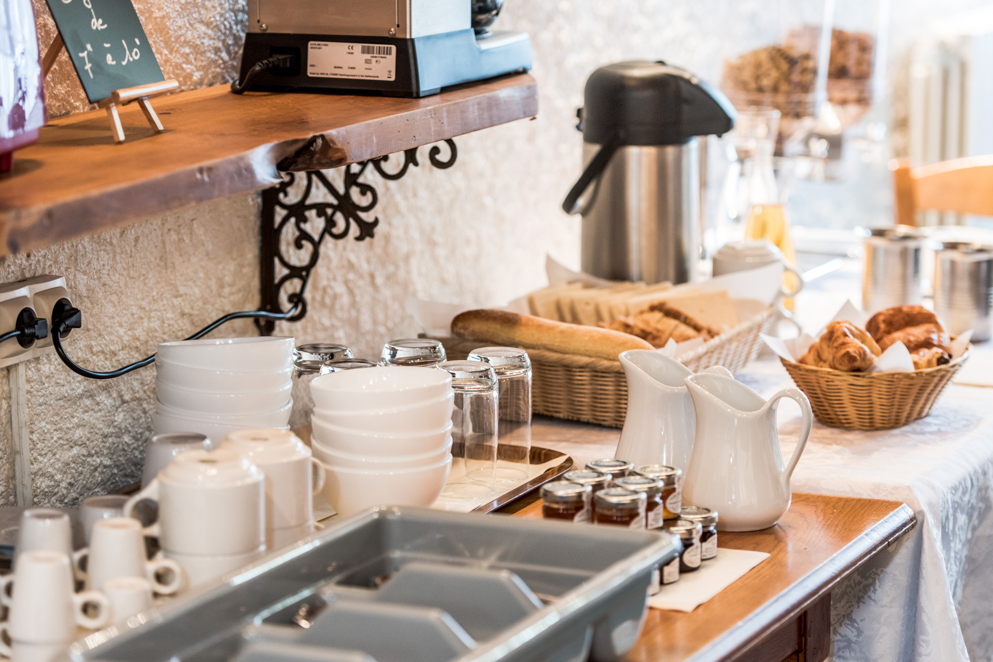 Nous vous proposons au sein de notre établissement en plus de l'hébergement : la demi-pension ou uniquement le petit-déjeuner. Le dîner que nous préparons est fait de produits locaux et peut être éventuellement adapté. Nous privilégions votre bien-être avec des lits doubles mais nous pouvons adapter en lits individuels à votre demande. Nous vous accueillons dans un établissement de 14 chambres, toutes équipées de SdB avec WC. Wifi présent, gratuit dans toutes les pièces.