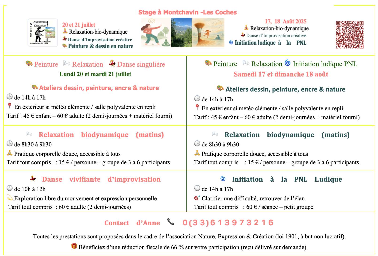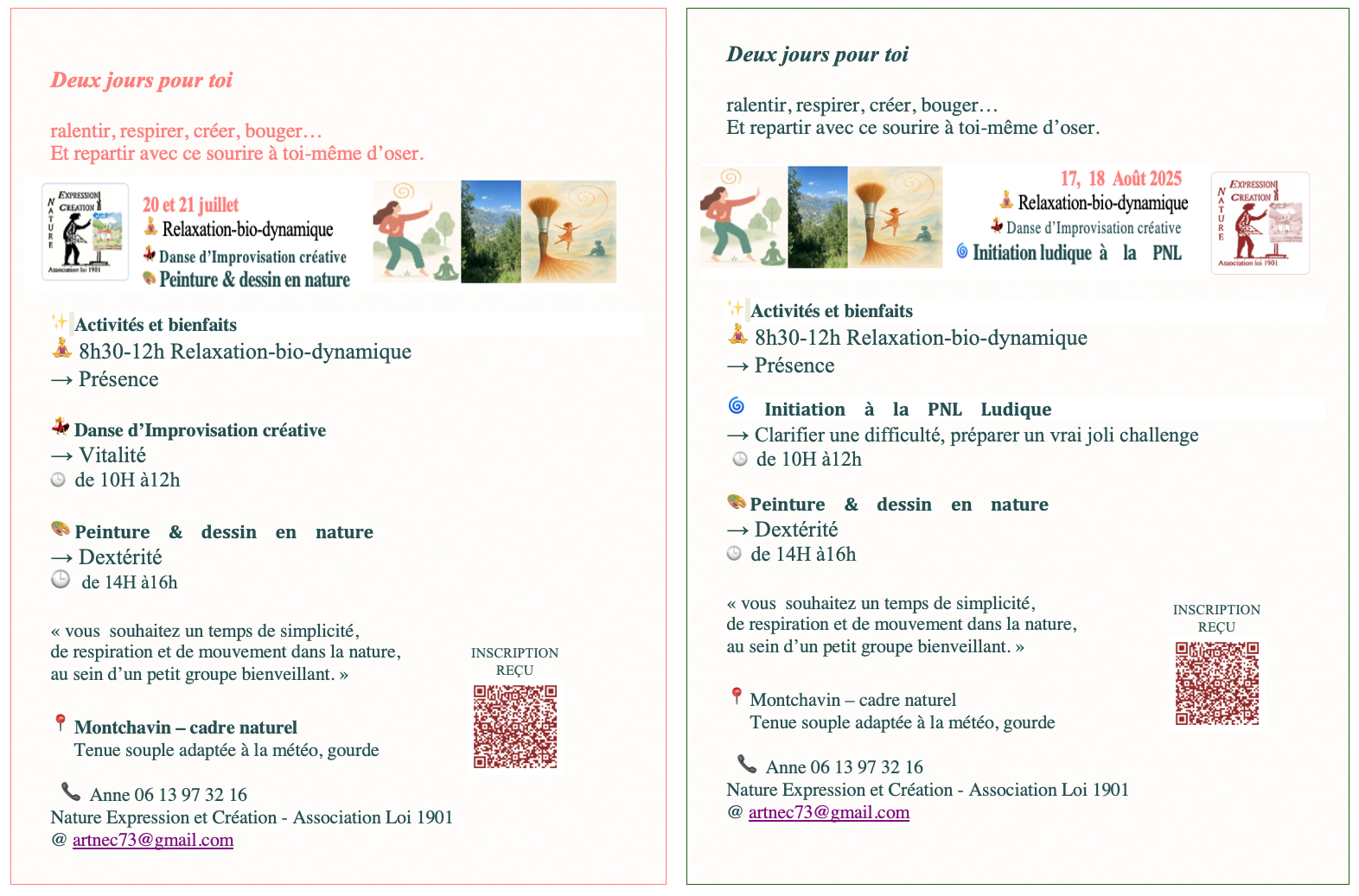* Relaxation biodynamique (matin) de 8h30 à 9h30 : pratique corporelle douce et accessible à tous