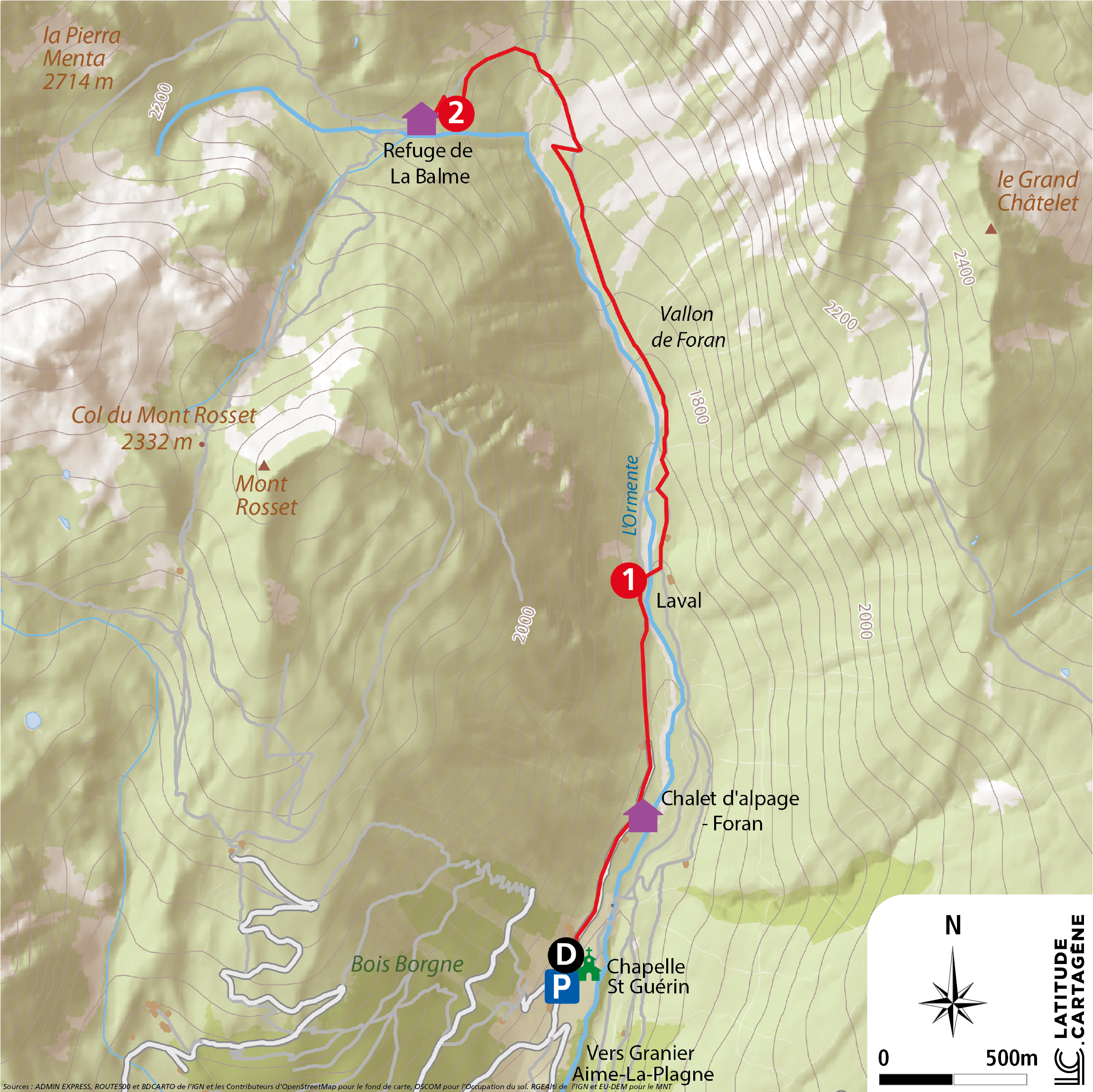 1/ Suivre le GR5, traversant le vallon de Foran et arriver au refuge de la Balme. Accès facile afin de visualiser le rocher de la Pierra Menta.