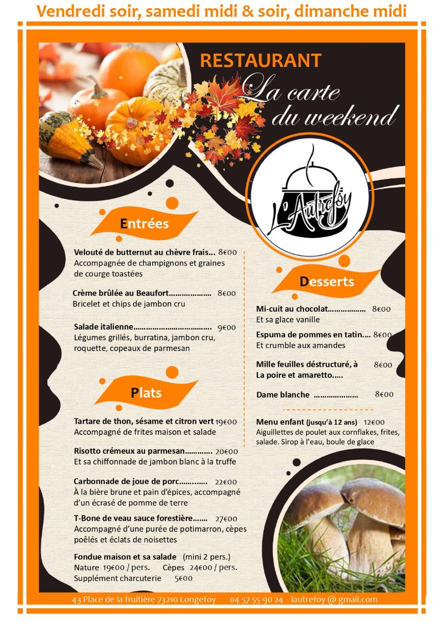 Planté en plein centre du village, « L’Autrefoy » est un lieu multiple regroupant, une épicerie, un café ouvert sur l'extérieur mais surtout un restaurant-bistrot avec menu « fait maison » aux saveurs d'antan !