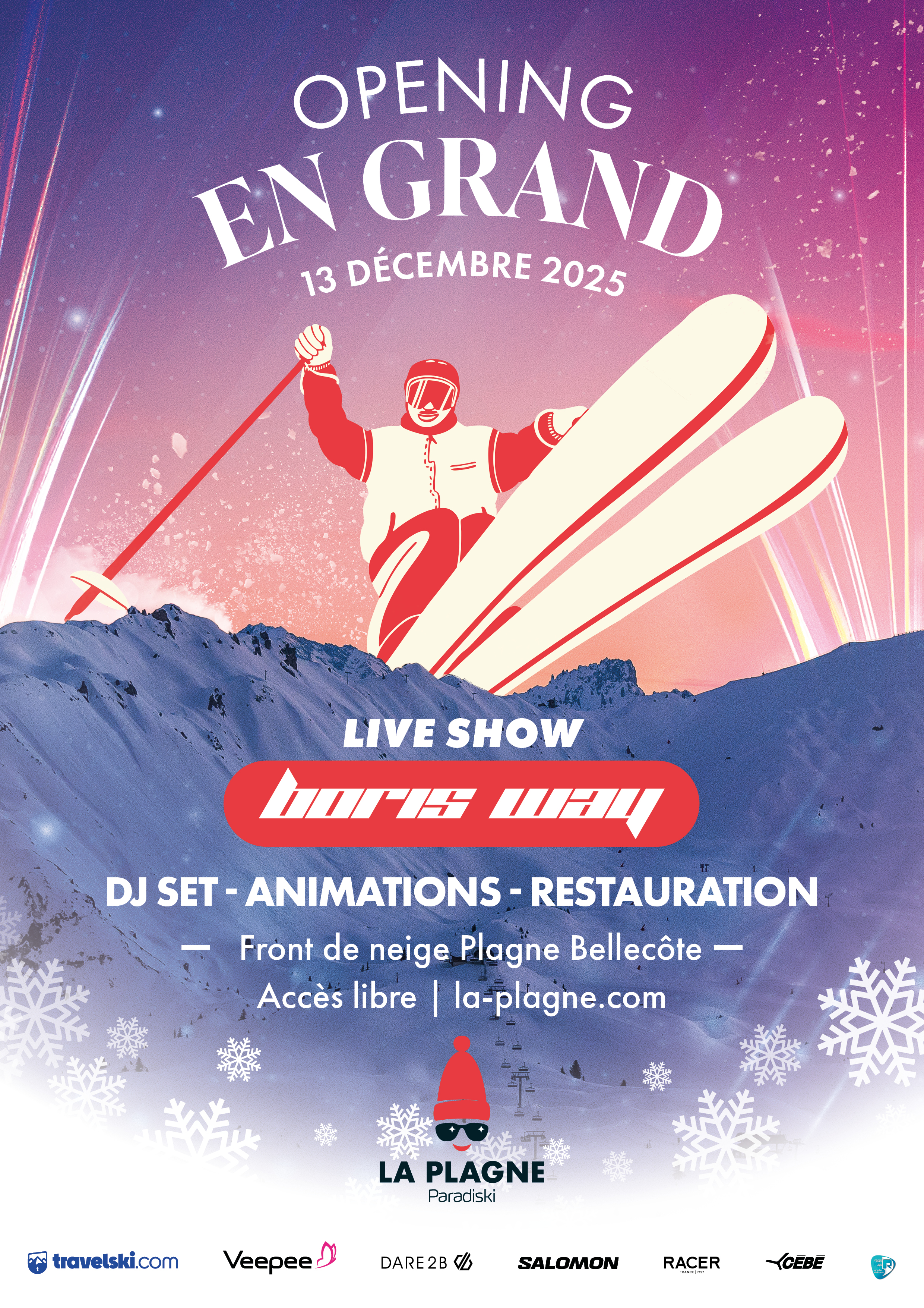 Les montagnes se parent de leur manteau de neige, prêtes à accueillir les amateurs de glisse et de détente. On vous attend pour faire la fête et célébrer l'ouverture de la station avec, pour compléter la journée de glisse, des festivités et évènements mis en place exclusivement pour ce premier jour de la saison.