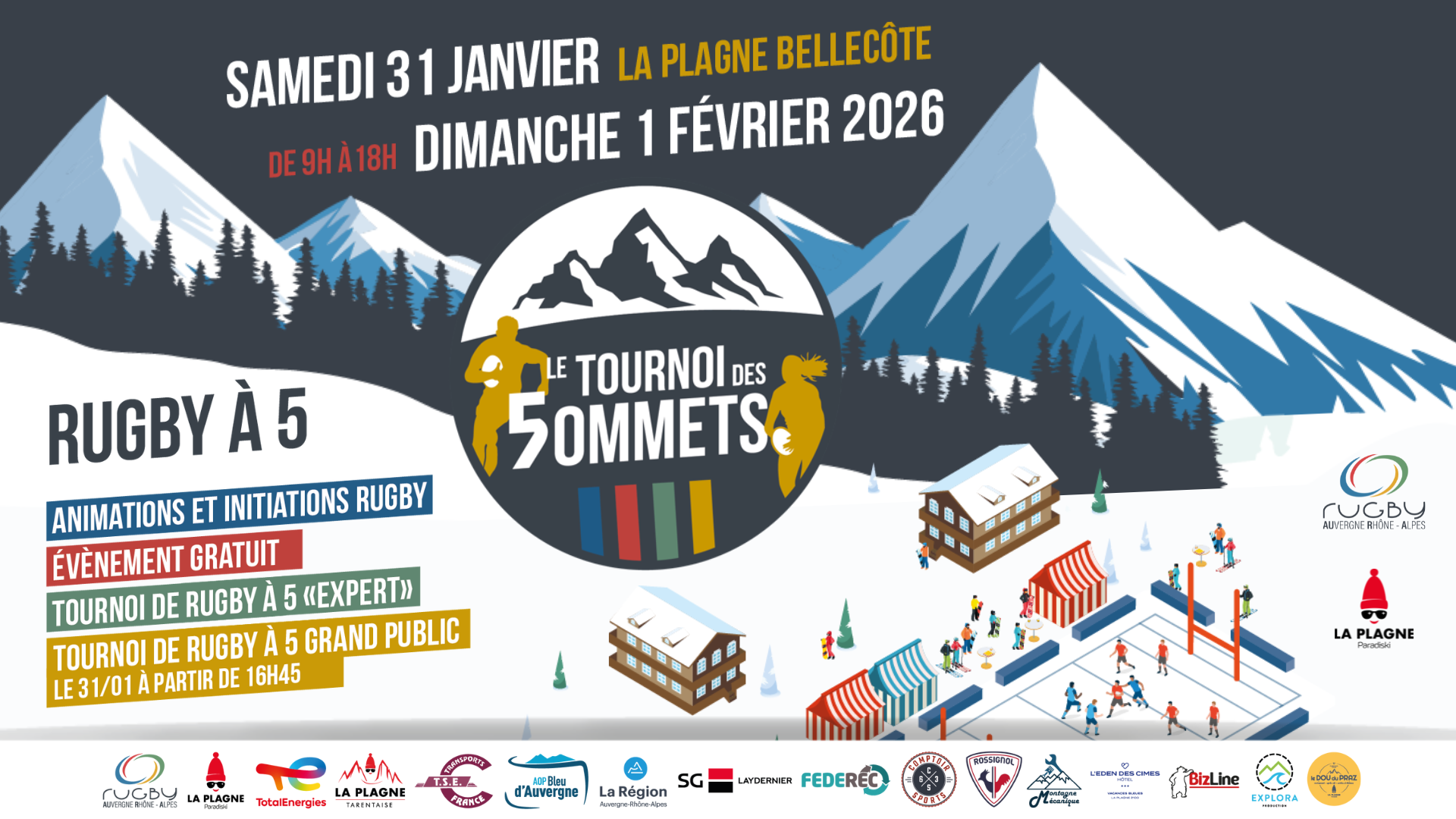 Le rugby débarque sur la neige ! ❄️ Samedi 31 janvier et dimanche 1er février La Ligue AURA organise son premier événement de Rugby sur Neige : le TOURNOI DES 5OMMETS ! (rugby à 5) Un tournoi de rugby sur neige et des animations ouvertes à tous !